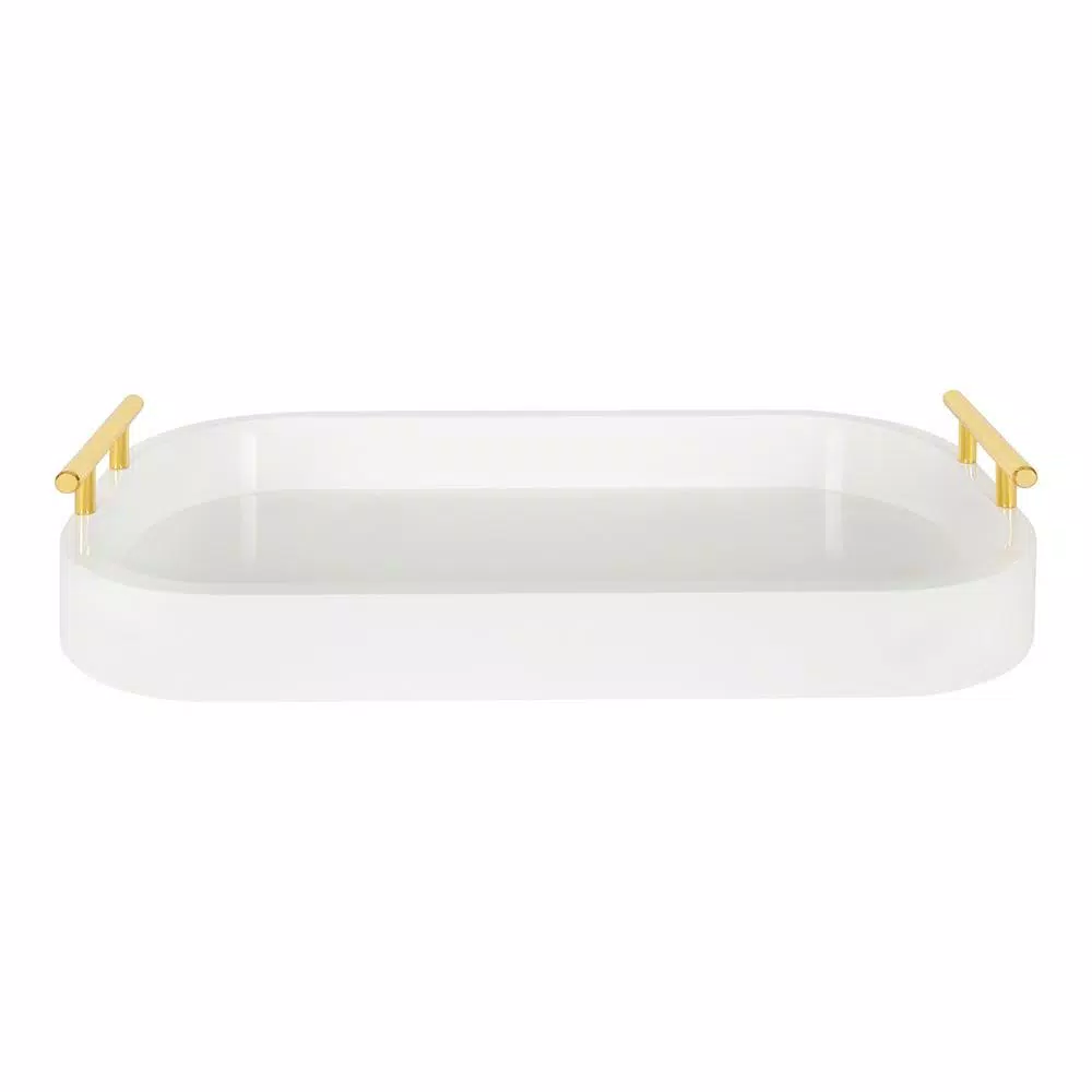 Mid-century functionality has never looked so good with the beautiful Lipton Tray from Kate and Laurel. This edition of our popular Lipton line features a glossy finish for that elegant mid-century modern edge. Its functional metal handles elevate your decorative aesthetic with a polished gold finish, drawing the line and creating a beautiful statement. This decorative tray has a radius rectangle design, with rounded edges and a total size of 18 in. long x 10 in. wide. This generous size gives you plenty of room to display small plants, store jewelry and lotions or simply give you a place to put your media remotes. It also functions as a great serving tray, so long as you remember the coasters and plates. Modern glam design stands out in any room its placed in, but this tray looks spectacular in any living room, entryway, bedroom, bathroom or kitchen. It’s excellent for hardwood surfaces. too, thanks to the protective pads securely attached to the bottom to prevent scuffing.