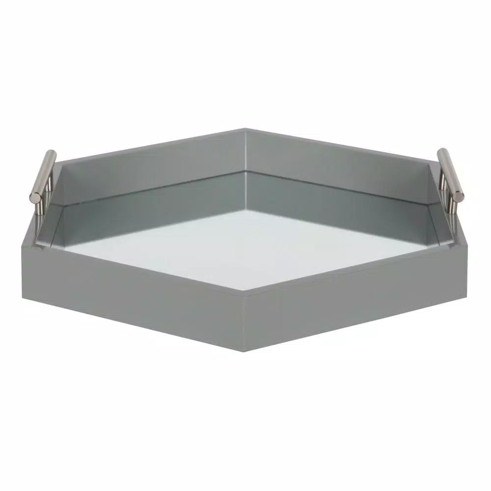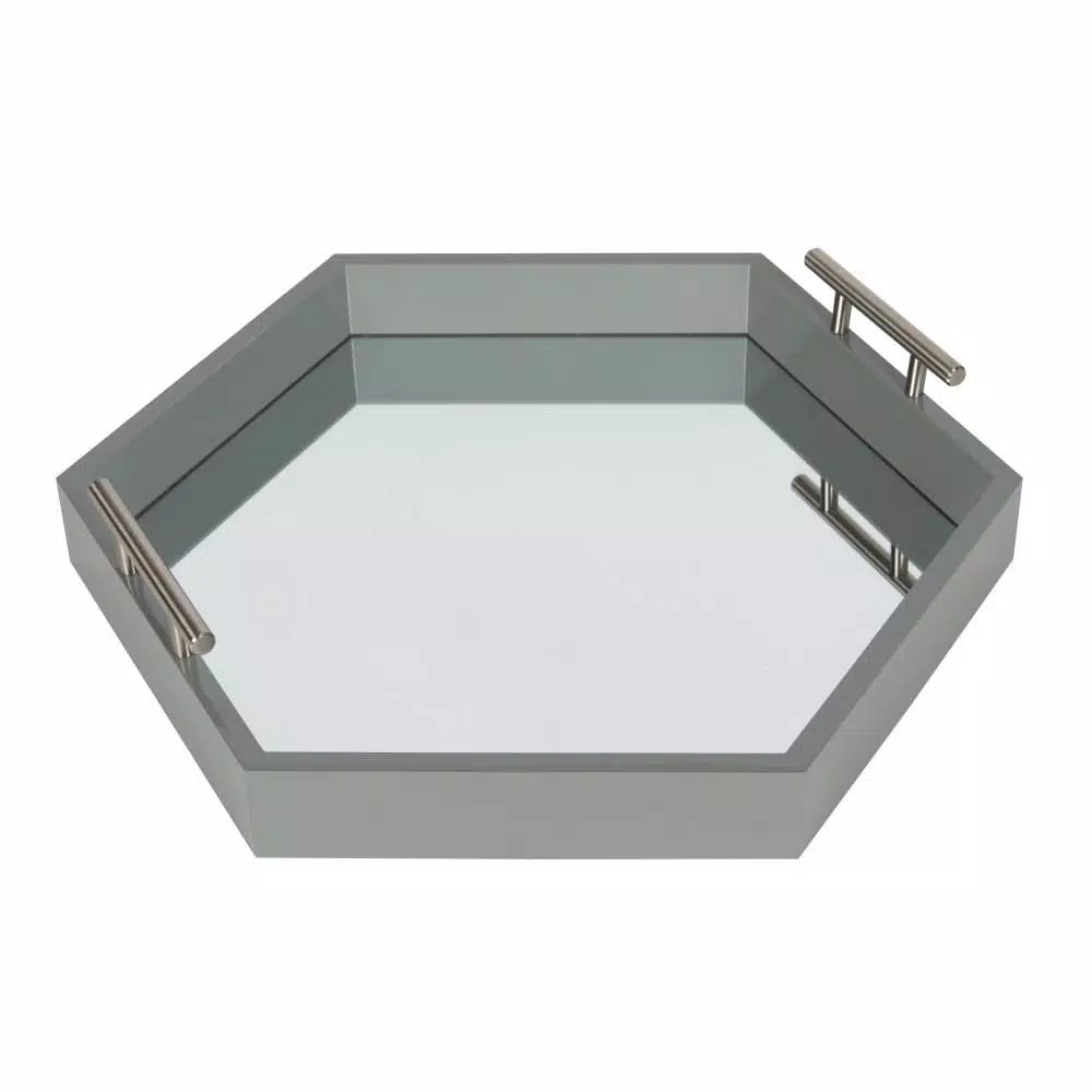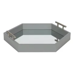 - Decorative hexagon shaped contemporary tray with polished metal handles will be an elegant accent in your home