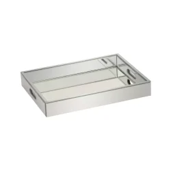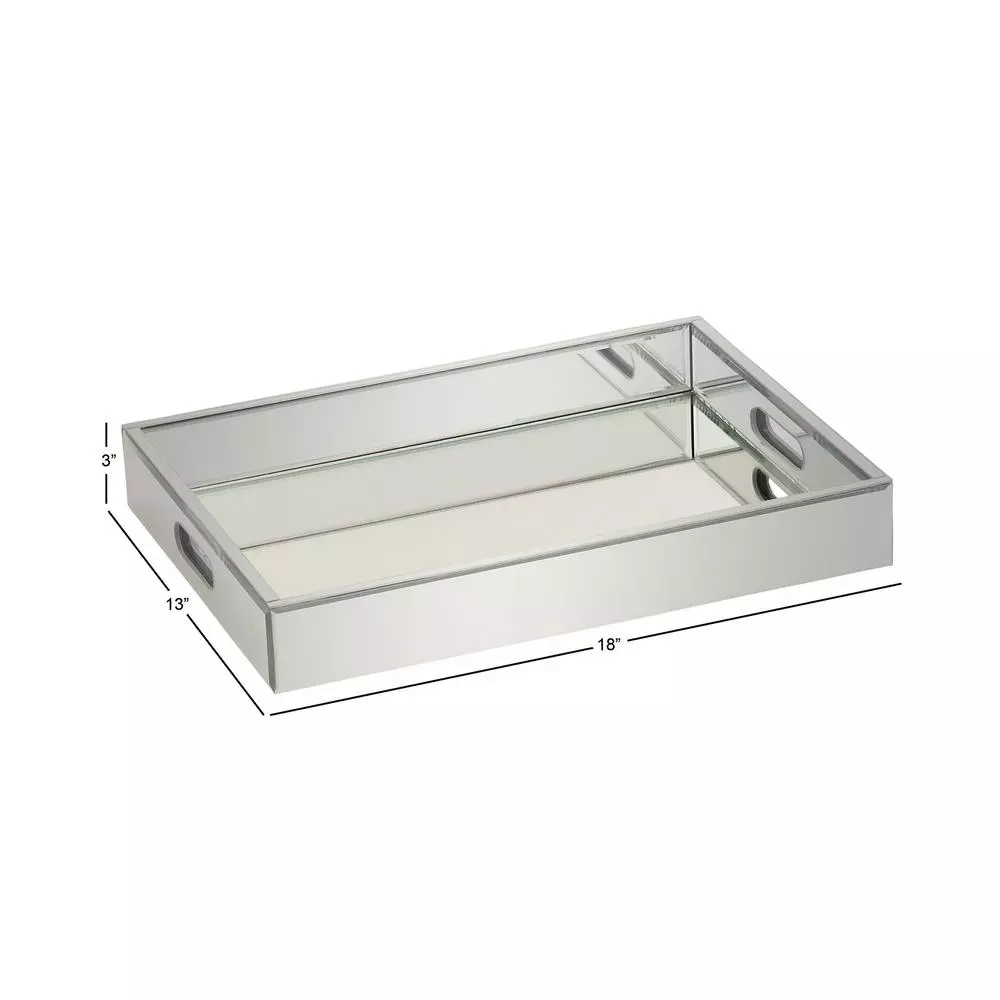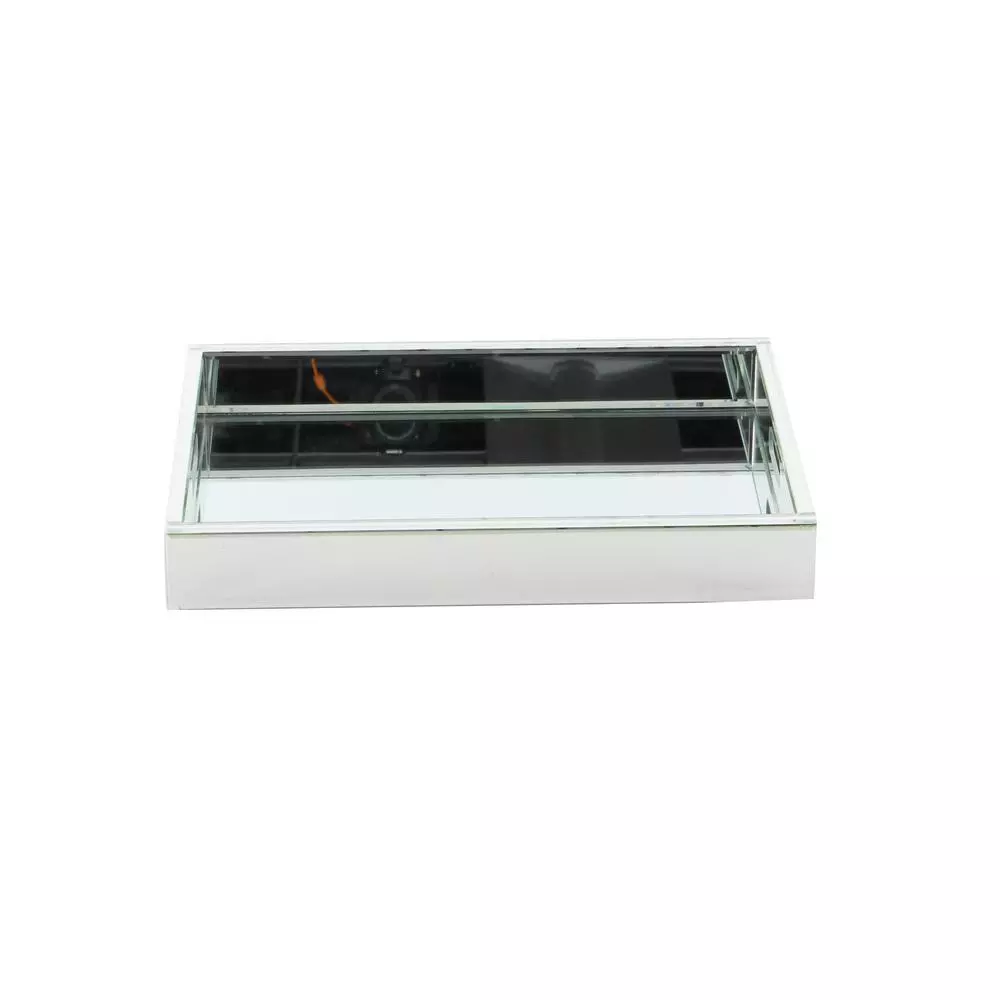 3″ Classic Modern Wood Mirror Tray in Polished Silver Aluminum Exterior and Mirror Glass Interior
