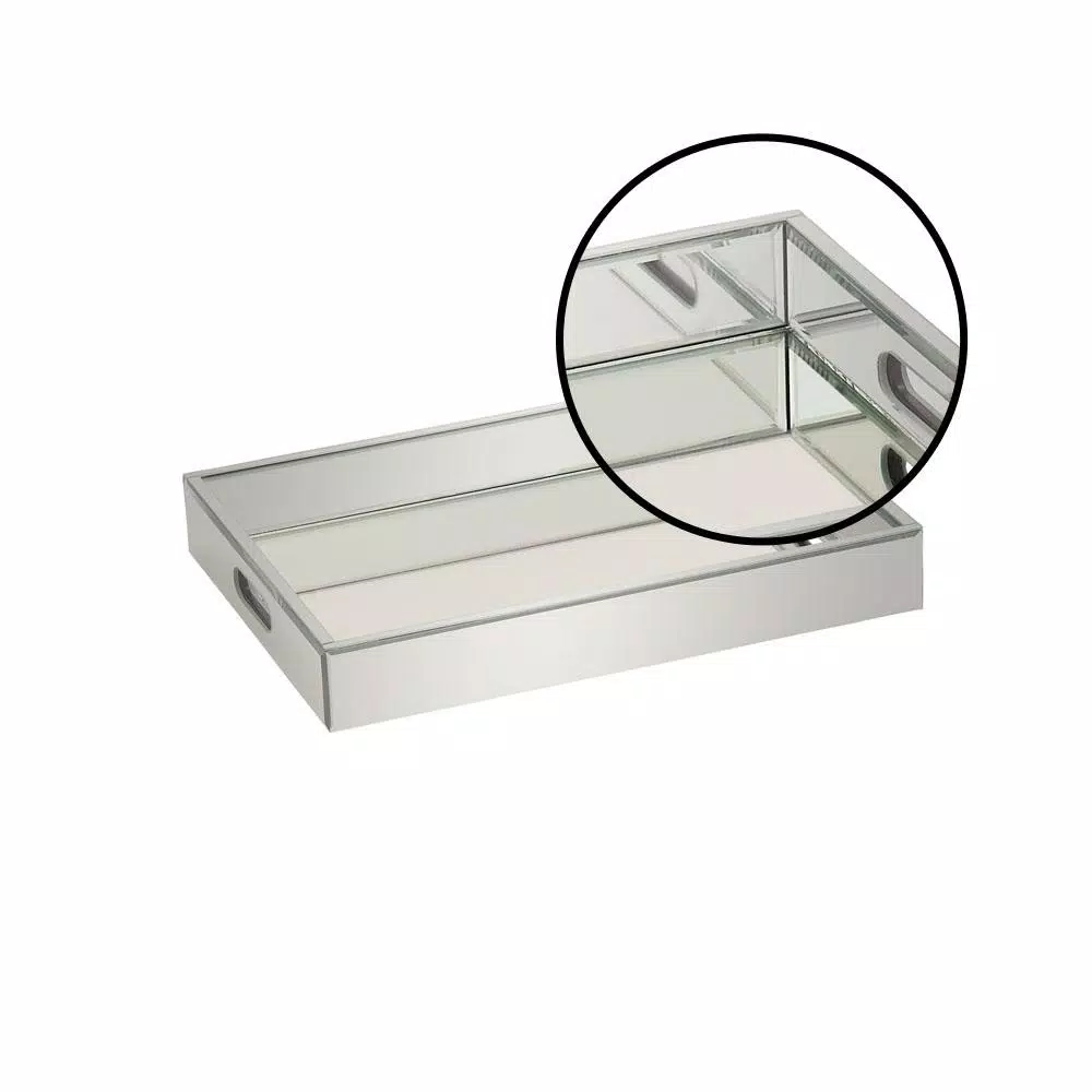 - 3″ Classic Modern Wood Mirror Tray in Polished Silver Aluminum Exterior and Mirror Glass Interior
