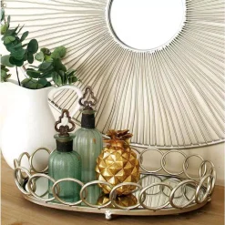 - Set of 2 modern 18 and 22 inch silver iron and glass oval ring trays