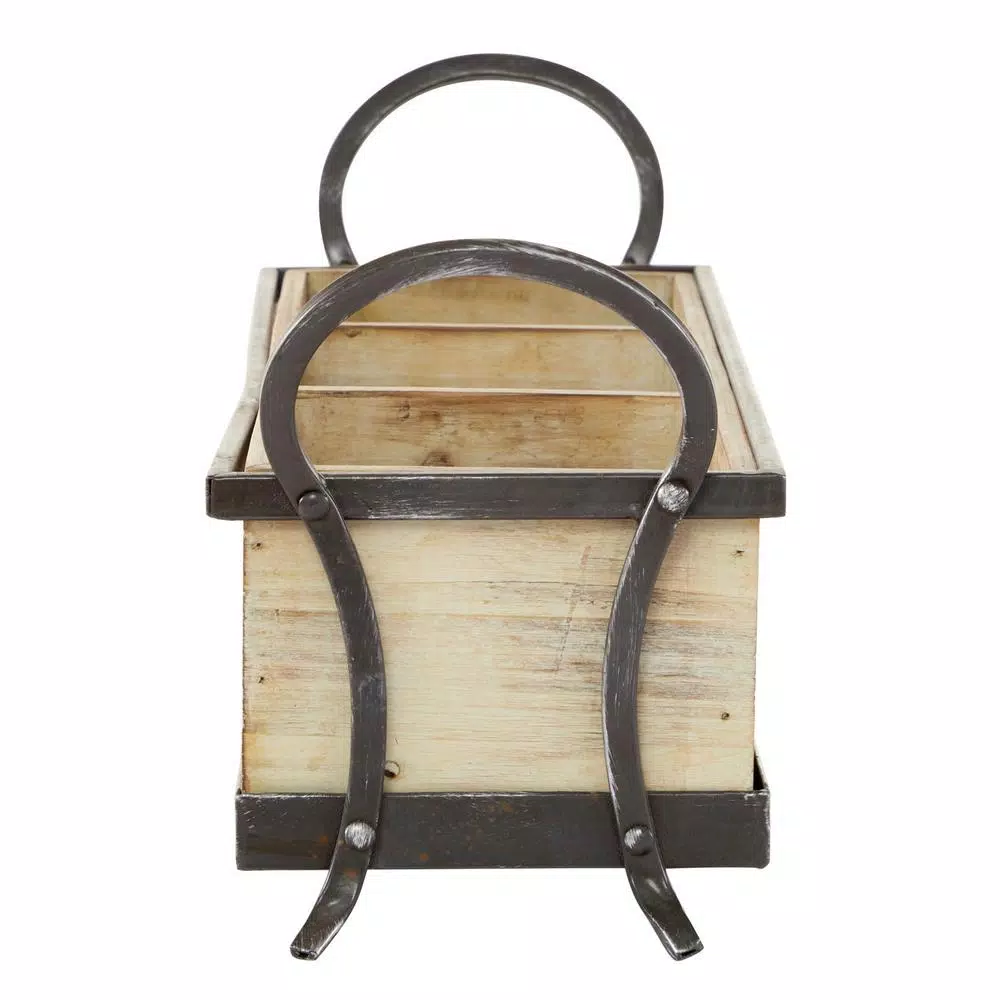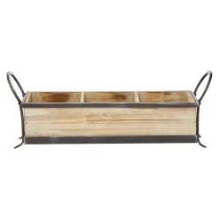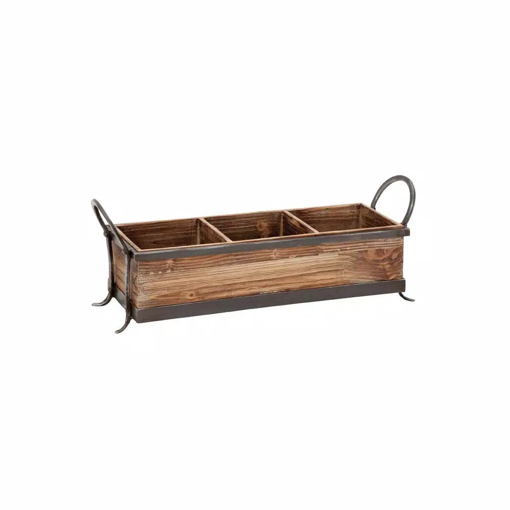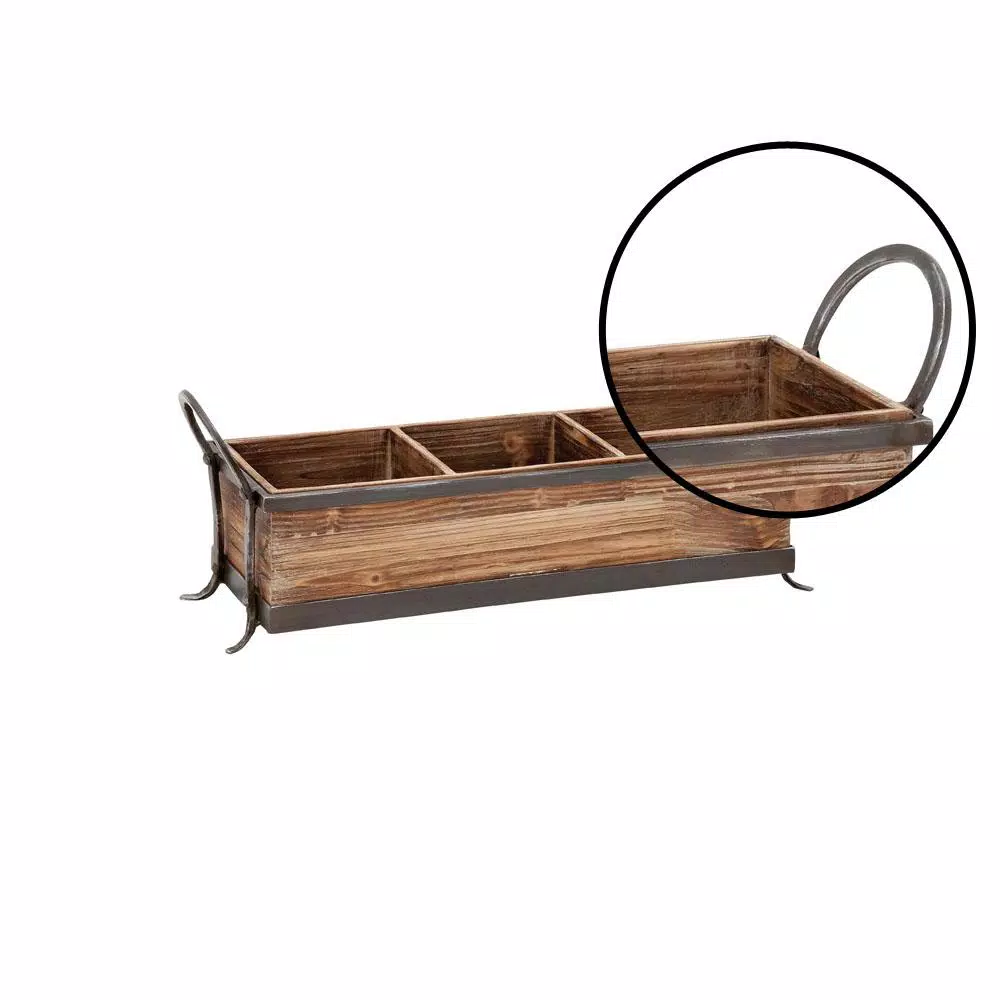 - Farmhouse 8 X 22 Inch Rectangular Fir Wood and Iron Three-Compartment Tray