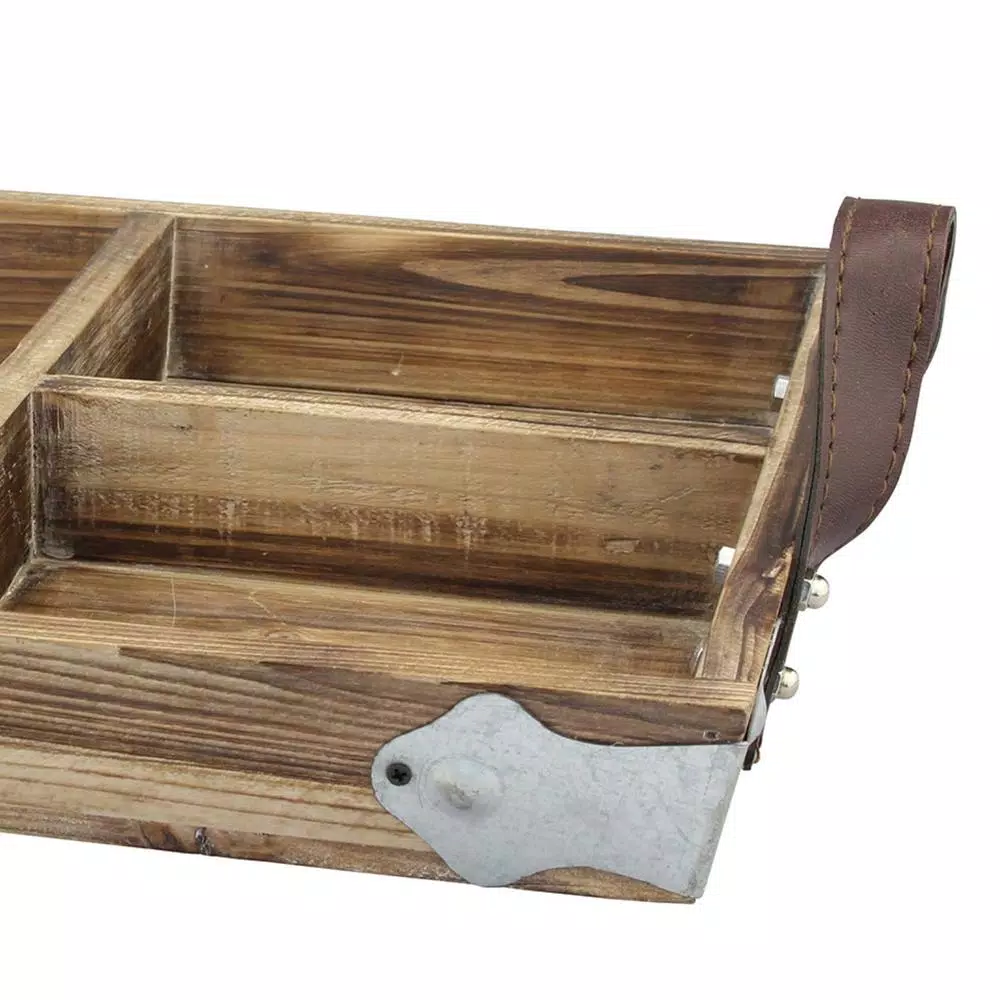 Cute wood tray with dividers is a great way to organize any office or house. Use as your catch all tray, to display your favorite decor or as your to do tray. Has 2 handles for easy moving and has metal details on each corner to add extra charm.