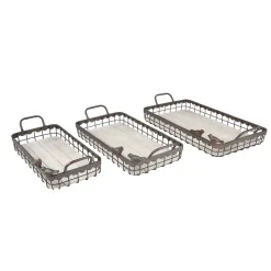 LITTON LANE Rectangular Brown Wood And Metal Decorative Trays With Bird Figurines (Set Of 3)
