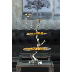 Decorative Trays A & B Home Iron Branch Two-Tiered Silver Tray