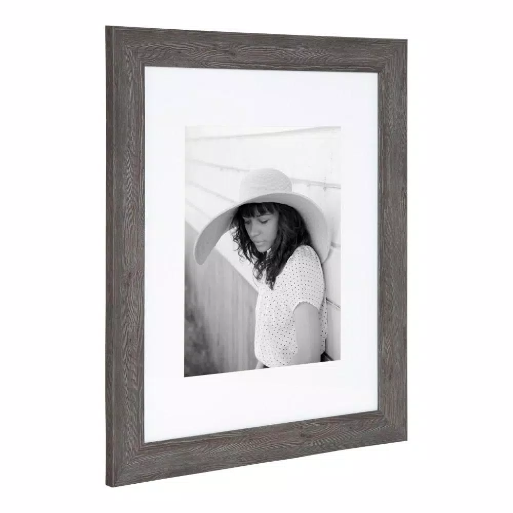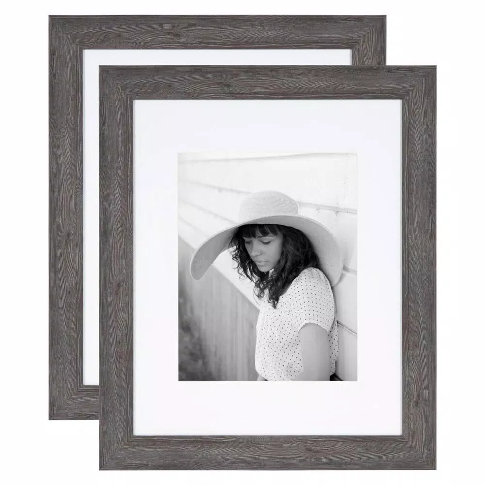 Indulge your love of traditional decor with this farmhouse-inspired frame set from Kate And Laurel. This frame has a rustic gray finish for an antique-like yet transitional look to blend in seamlessly with all of your home decor. Mount this frame set in your living room, family room, dining room, entryway, bathroom, or bedroom. You can mount this 2-piece set together as a wall display or separately throughout your home. Thanks to metal D-ring hangers and the attached backing stand, you can also choose to hang these frames or mount them on any desk or console table. These frames hold a 14 in. x 11 in. photo with the included mat or a 20 in. x 16 in. photo without the optional mat. The outside dimensions of each frame are 23.5 in. H x 19.5 in. wide.