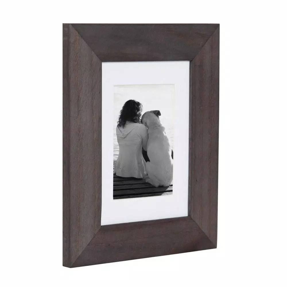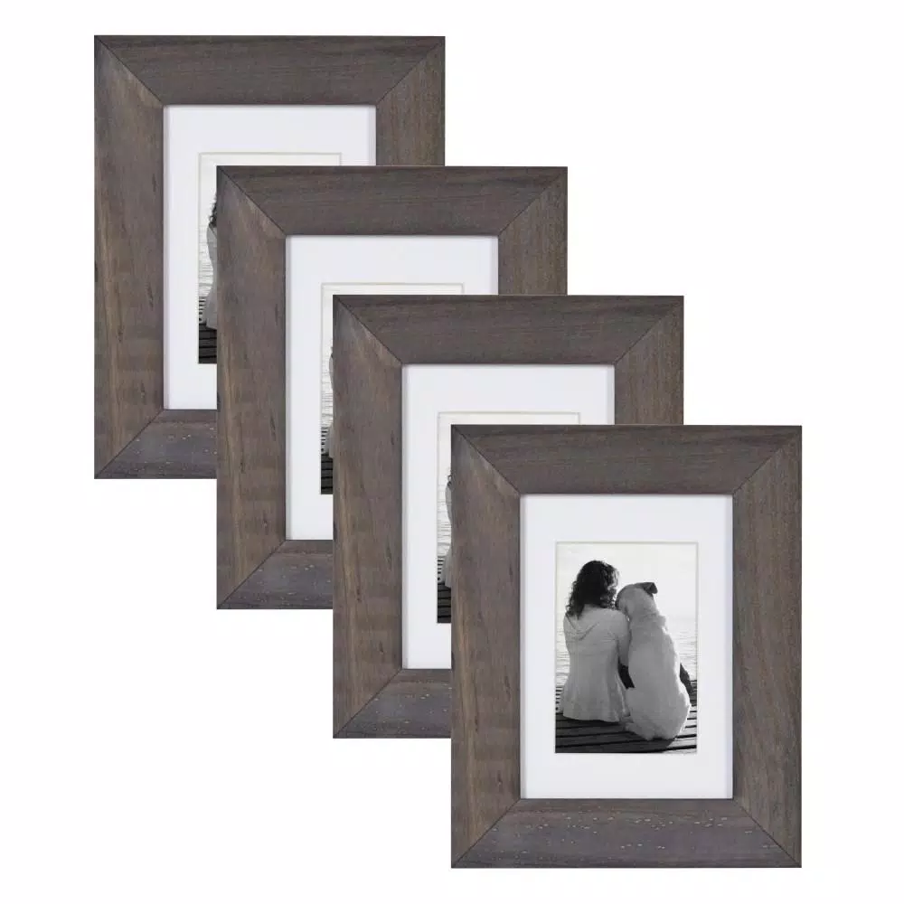 Turn your home decor into an exclusive museum quality wall gallery. This classic frame has a beautiful rustic finish with sturdy wood construction. Each frame includes an optional crisp white mat that will highlight your art prints or own treasured photos beautifully. Combine with other frames in the collection to create beautiful and contemporary art galleries on your own wall. The opening is 5 in. x 7 in. matted down to 3.5 in. x 5 in. The outside frame dimensions are 7.5 in. x 9.5 in. Comes in a pack of four.
