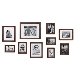 Family photographs should be displayed where they can be a constant reminder that time spent with family and friends should be remembered and enjoyed by everyone. Sharing those photos is a joy that brings not only you satisfaction but also entertains your guests. Done right and you have a timeless collection of your best times captured in one lovely customized view on your favorite wall. A pleasure to view everyday and fun to add to over time. The Kate and Laurel Bordeaux frame set helps you tell your story creatively, tastefully and with the theme, you have in mind. Sizes: (1) 11 x 14 matted, photo display size 7.5 x 9.5; (2) 8 x 10 matted, one photo display size 4.5 x 6.5 and one having two photo displays cut in – each 3.5 x 5.5; (1) 7 x 9 frame matted, photo display size 4.5 x 6.5; (3) 5 x 7 frames unmatted, photo display size 4.5 x 6.5 and (3) 4 x 6 frames unmatted, photo display size 3.5 x 5.5