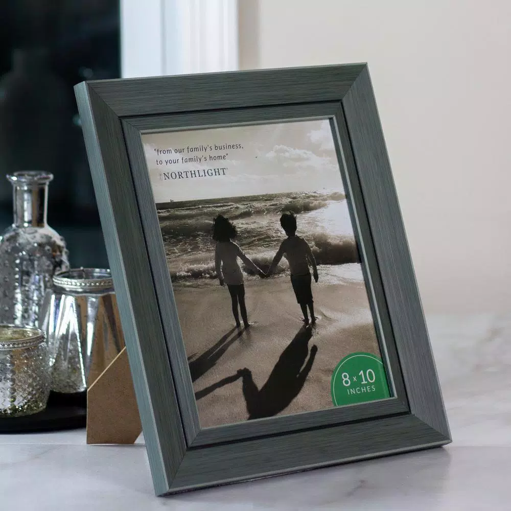 Add a personalized touch to any room in your house with this frame. Display your favorite photo so that you never forget the good times. Hang on a wall or display on a side table. Product Features: Gray photo frame. Holds one 8 in. x 10 in. photo. Can only be displayed vertically. Perfect to hang on any bare wall in your home or to display on a side table. Recommended for indoor use only. Dimensions: 11.25 in. W x 13.25 in. H x .75 in. D. Material’s: glass.