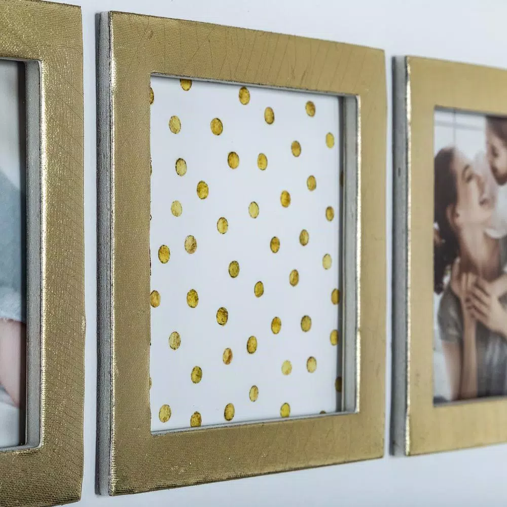 - Each white wall frame features a sleek gallery frame profile with a shadow-box effect and gold foil script text, delicate gold detailing on glass and dimensional matting that add a creative pop to your photos