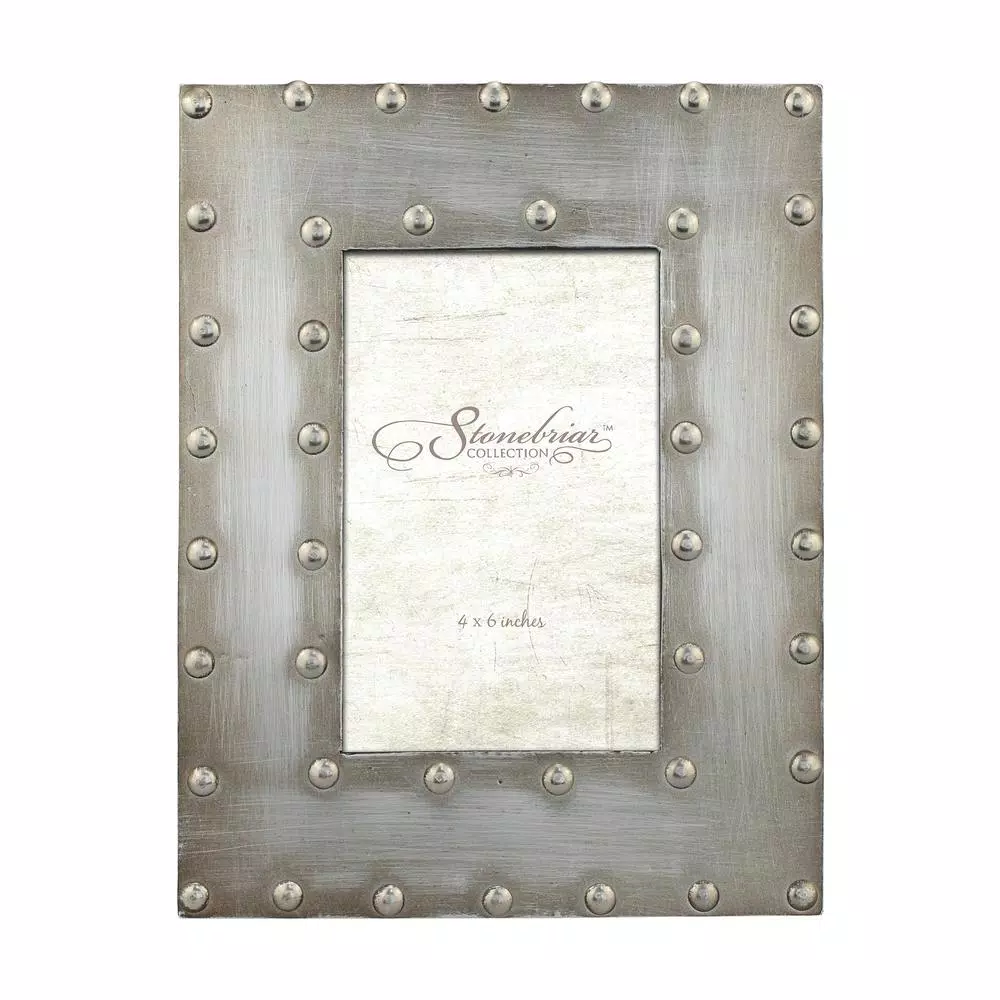 The metal wrapped from has a lovely rivet detail on the outer and inner edges. It will hold a 4Γ6 image horizontally or vertically. This style will add extra pizazz to any frame collection.