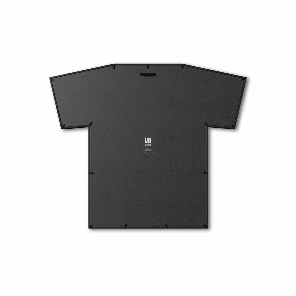 Immortalize your favourite t-shirt with the T-Frame by Umbra. From statement shirts to concert memorabilia and vintage wear, T-Frame cleverly converts your tees into hip, modern art. T-Frame holds one t-shirt for display and is made of a injected plastic frame and a plastic lens. Hangs on the wall via sawtooth hanger. T-Frame measures 21-1/2 inches by 19-1/2 inches, frame comes in black or white and includes a t-shirt folding template. Designed by Caleb Ferris and Prakhar Mehrotra for Umbra, T-Frame is a Pratt Institute 2012 Winner. Umbra – original, modern, casual, functional, and affordable design for the home.