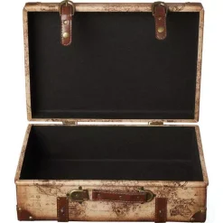 Storage Baskets Vintiquewise 17 In. X 12 In. X 6 In. Wood And Faux Leather Old World Map Vintage Style Suitcase With Straps, Set Of 2