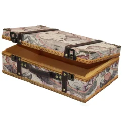 Storage Baskets Vintiquewise 13.8 In. X 8.8 In. X 5 In. Wood And Faux Leather Old World Map Suitcase