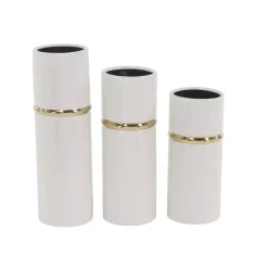 Vases LITTON LANE White Ceramic Decorative Vase With Gold Lining Detail (Set Of 3)