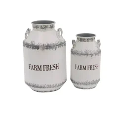 Vases LITTON LANE White Iron Milk Cans With Handles (Set Of 2)