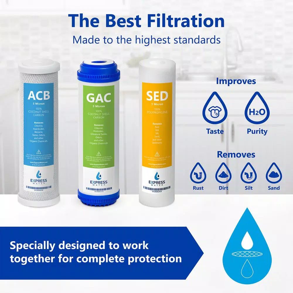 - Reverse Osmosis Filter Replacement Set: Each Express Water replacement filter is specially designed to work together and compliment each other. Get the cleanest water and the best value in your filtration