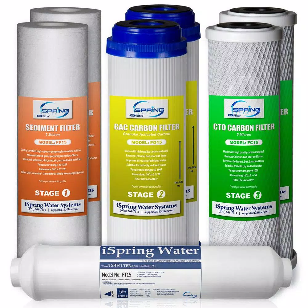 Timely replacement of filter cartridges is essential for the water quality and lifespan of reverse osmosis system. There are 7 pieces of 2.5 in. x 10 in. (industrial Standard) filter cartridges included in this genuine ISPRING filter pack, make it the convenient 1 year supply for ISPRING RCC7, RCC7P, RCC7U, and RCW5, and most other reverse osmosis water filtration systems in the market that use Standard 2.5 in. x 10 in. cartridges. The same as ISPRING water filter systems, these filter cartridges have been tested by independent third-party to meet NSF/ANSI Standard for material safety, durability and filtration performance – guaranteed to perform and last for the best. Choose ISPRING genuine filter pack for the quality, value and your peace of mind. Note: The 1-year filter supply does not come with an RO membrane, as the membrane only need to be changed every 2-3 years. To get a filter pack that includes the membrane, take a look at the 2-year F15-75 or 3-year F22-75 supply pack.