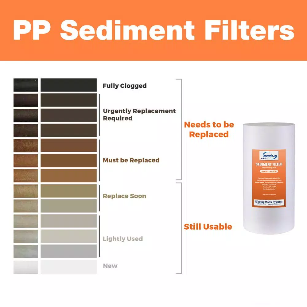 - Exceptional Filter Life: Filters up to 15,000 gallons depending on the use and feed water quality. Replace the filter every 3-6 months to achieve optimal performance. Combining with other filters such as CTO filter(FC15B), iSpring fine PP sediment filter not only brings clean and fresh water to every faucet in your house, but also help prolongs the lives of your water-using appliances and protects plumbing from sediment and scale buildup.
