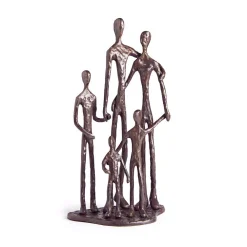 Commemorate family with DANYA B handcrafted sculpture representing a family of 4. This artistic piece of parents holding their children reminds us of the closeness and joy of family. This piece of art was lovingly cast using the sand casting method.
