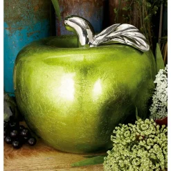 - 9″ Modern Reflections ceramic emerald green apple, lacquered finish dolomite, silver-finish leaf and stem detail