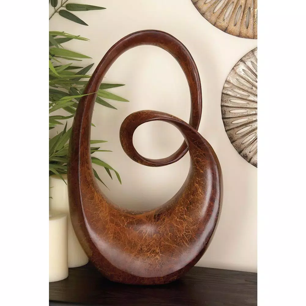 A poly resin abstract sculpture crafted contemporary design. It is creatively crafted shape with fine attention to details. A perfect for conventional home settings.