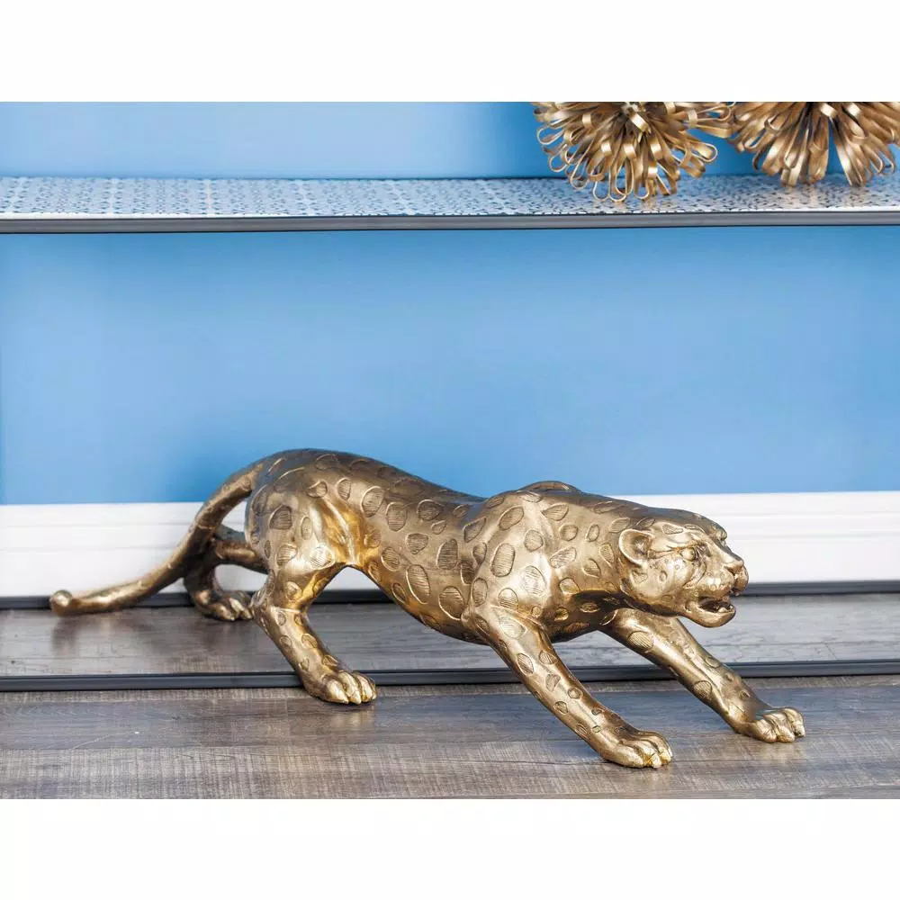 This decorative piece features a leopard sculpture in an elegant gold finish. It is crafted with detailed leopard body and facial features that will bring out an amusing finish on your desks. This decorative sculpture is a perfect addition to any traditional or animal-themed setting.