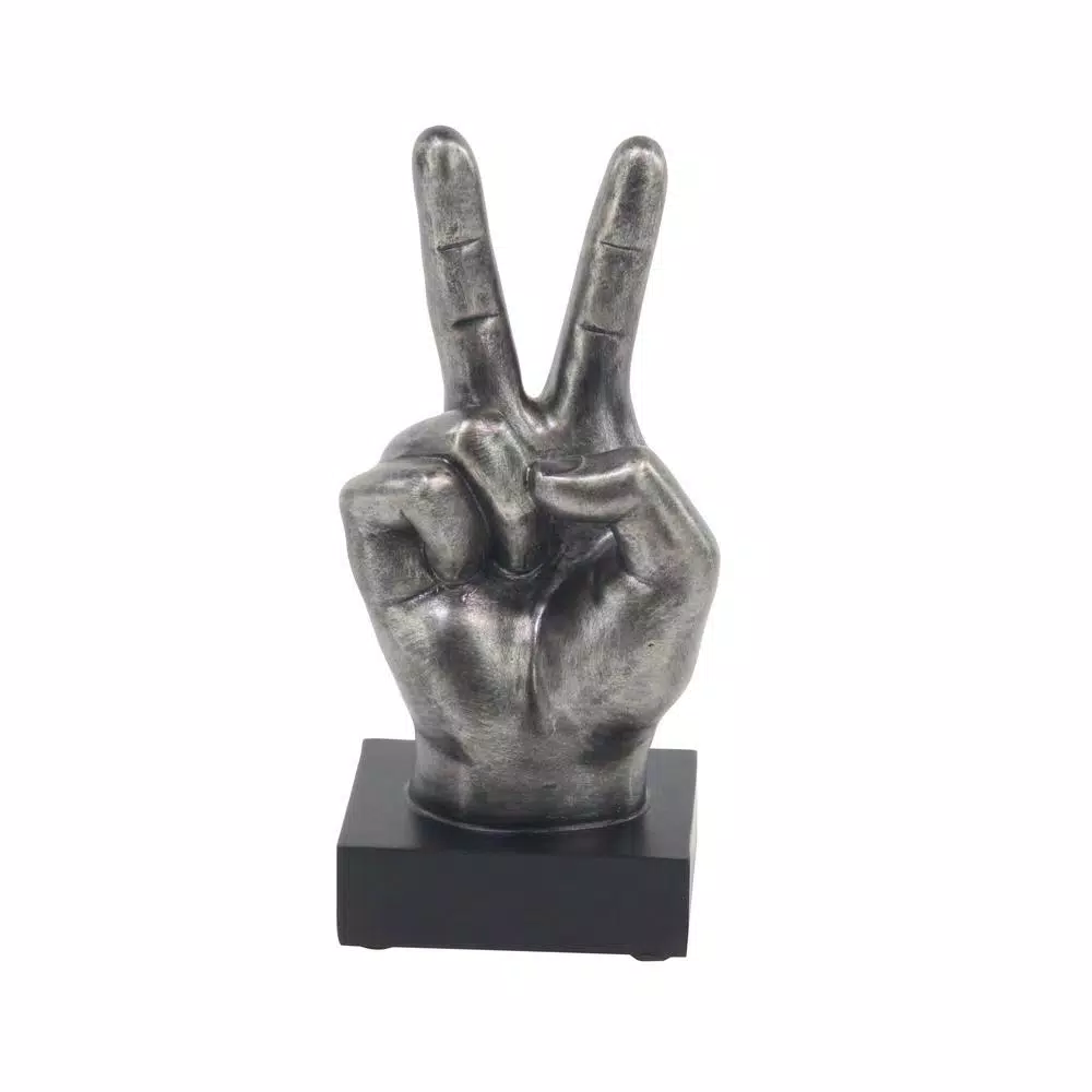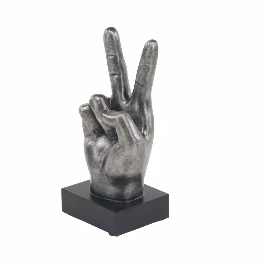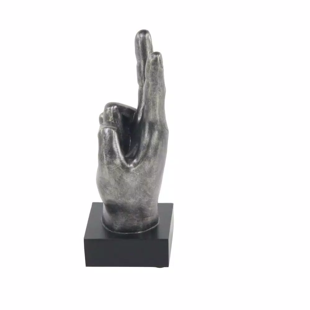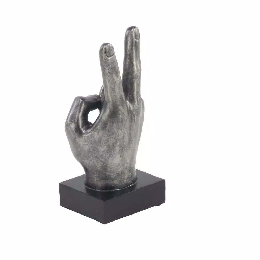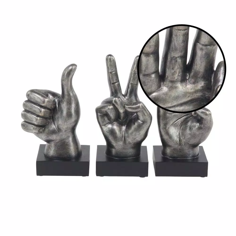 Set of 3 10″ x 6″ Modern Reflections polystone hand sign sculptures, features three versions of realistic handsign sculptures made from distressed gray polystones, includes thumbs up, peace sign and okay sign, square bases
