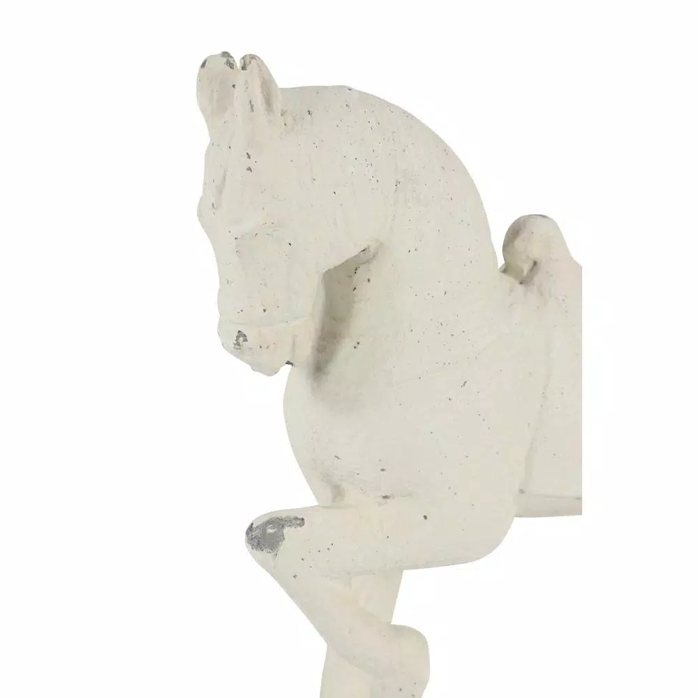 Bring an antiquated regal air into your space with this large, white horse sculpture… The facial features, saddle, and tail are accentuated by the distressed white finish over the gray resin base. Decorative chipping and speckling create an authentic vintage feel. The neutral hues of this textural white shelf decor work with any color palette while bringing equestrian sophistication to your antique-style home.