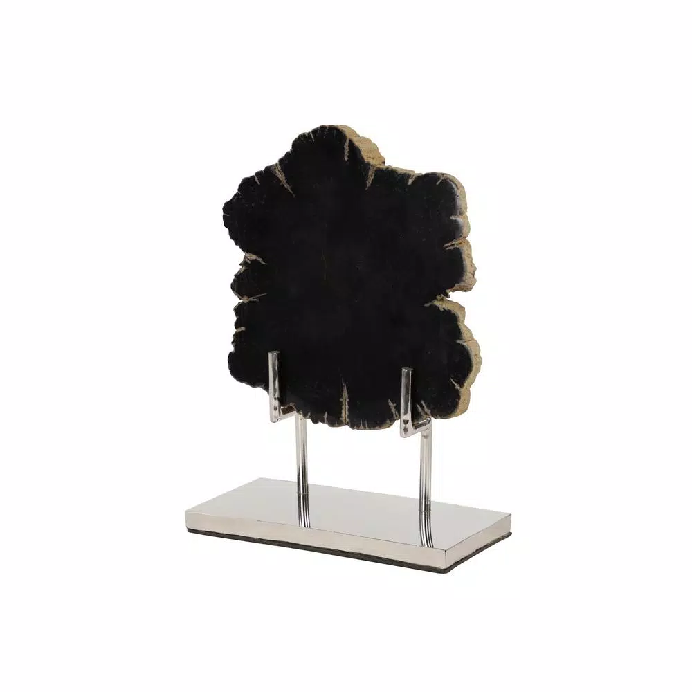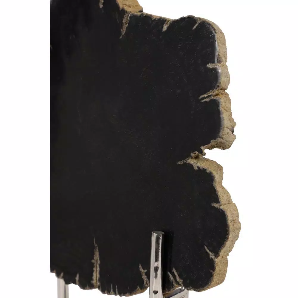 - Natural hues from minerals: The bold, dark brownish black color of this rustic decor is formed from minerals, contrasted by the deeply textural light beige bark forming an irregular shape; a shiny metal, modern rectangular base with rounded arms securely holds the petrified wood slice