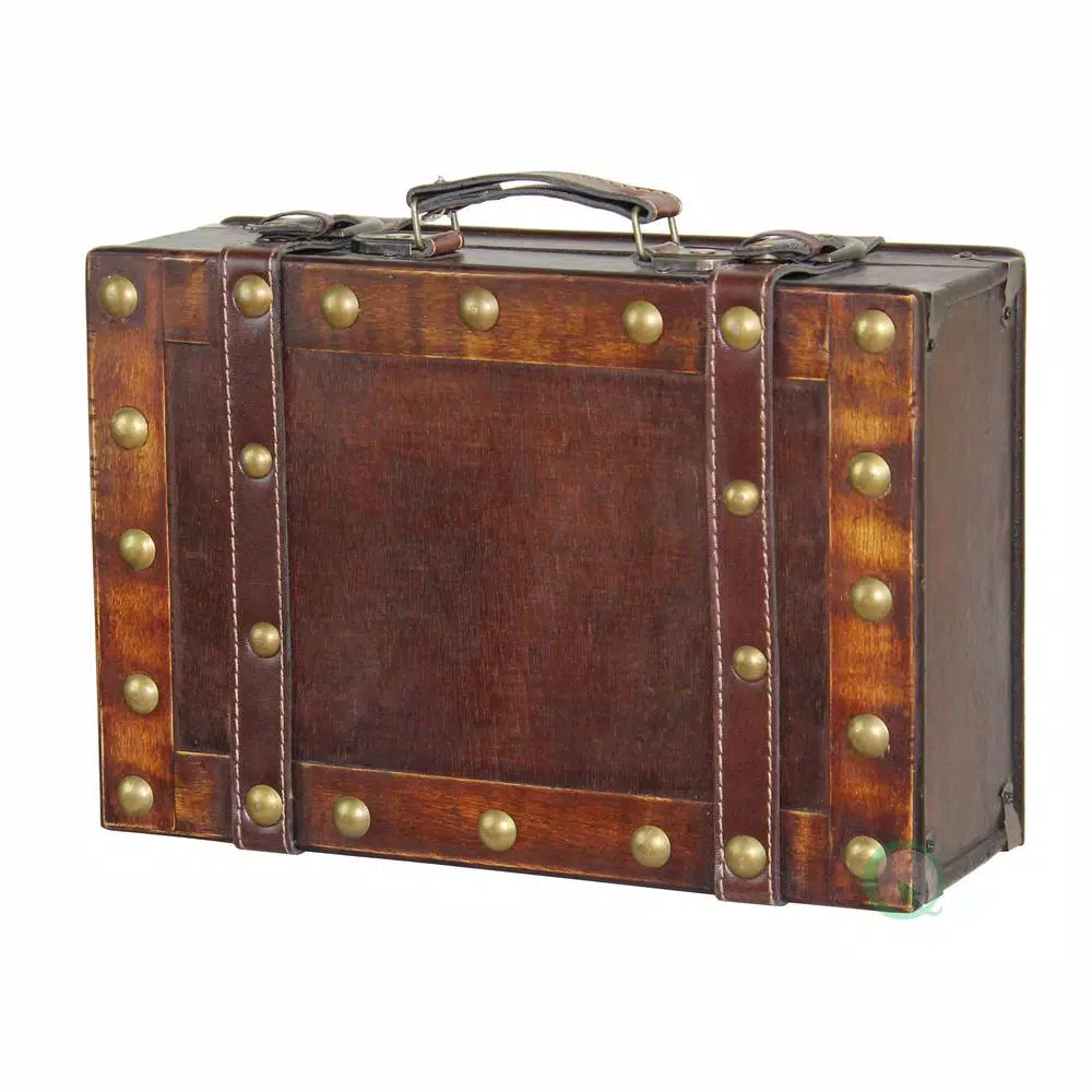 - Decorated with leather in the at the edges of the suitcase to give this antique looking effect