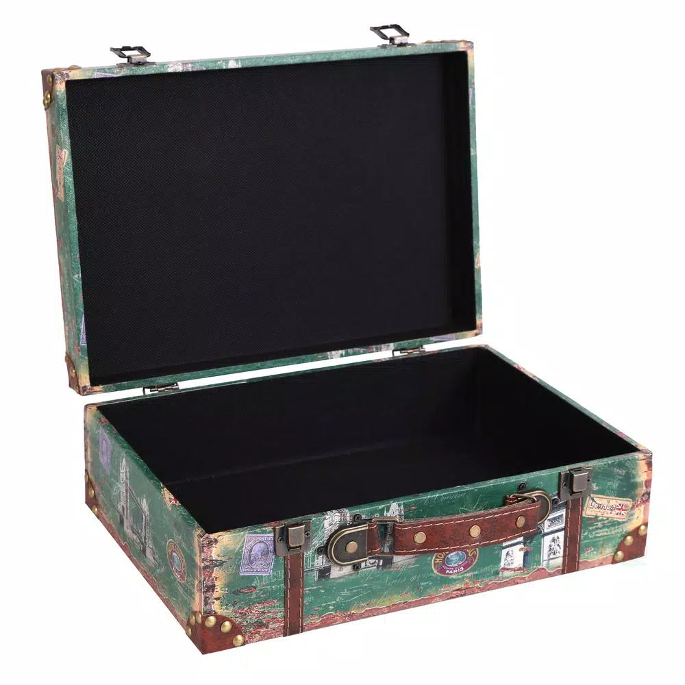 Add vintage storage to your home with these designed European Landmark suitcases. Stack them closed to add a charming touch to any space. Display them open with travel books, a treasured stamp collection or world coins. Use them for holding mementos from your many adventures, such as postcards, photos or souvenirs.