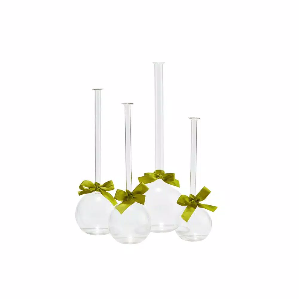 Like little gifts sprouting a flower or greenery, this set of three designs is made from hand-blown glass. Unlike traditional vases, the stunning designs feature a unique green ribbon detail that can be updated to fit any look or decor. These are a fun way to show your love of flowers.