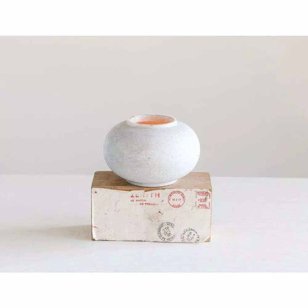 Beautiful with a distressed finish, this handmade marble rose bowl is a favorite for displaying short dried botanicals. It can also be the base for a tall glass encased candle or potted plant. Display on a table, mantel or counter space.
