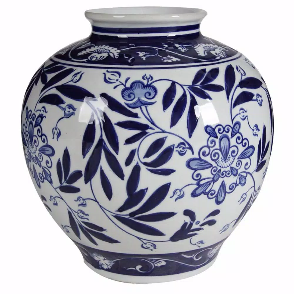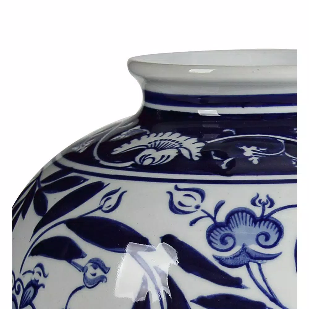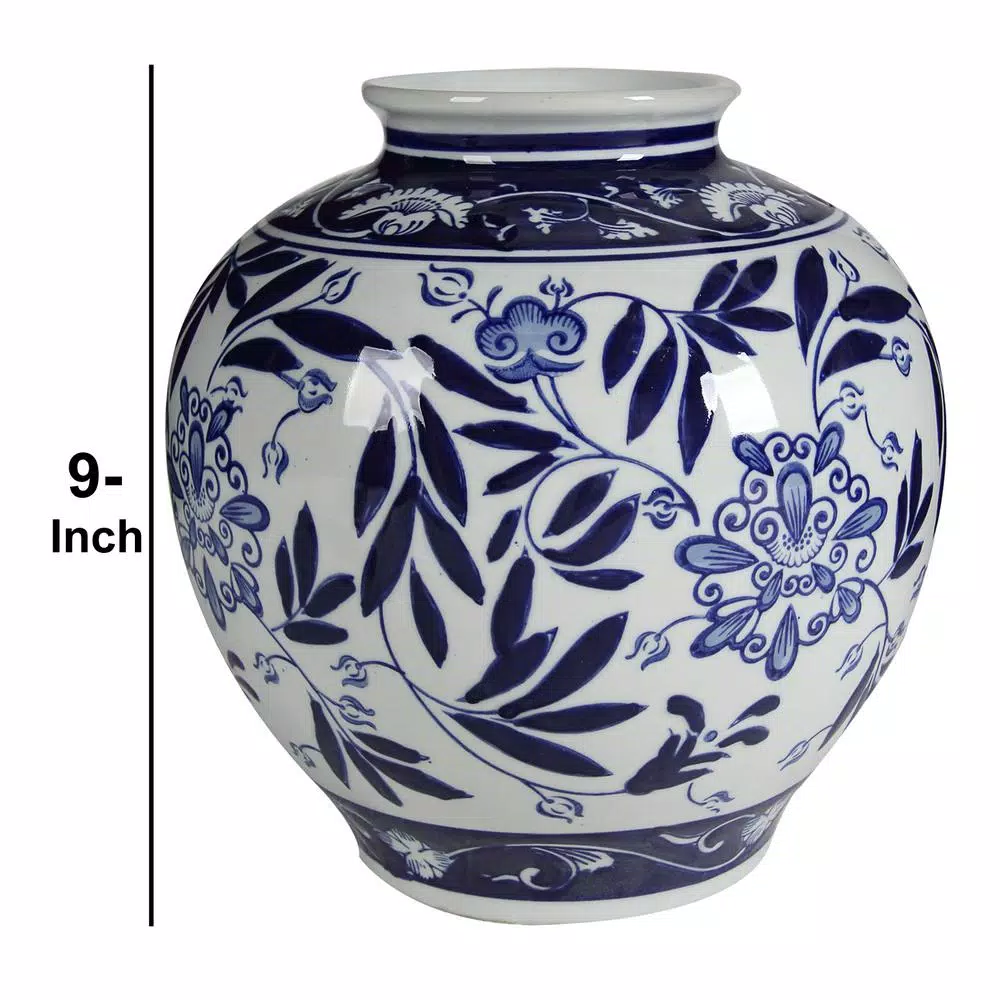 Classic shape meets gorgeous design in this pot shaped vase. Decorated over all with floral design, this vase complements decor of different styles. Place it inside the house or outside in the garden, this vase definitely stands out. Its neat finish, beautiful design and glazed tone makes it worthy to be part of any room in the house.