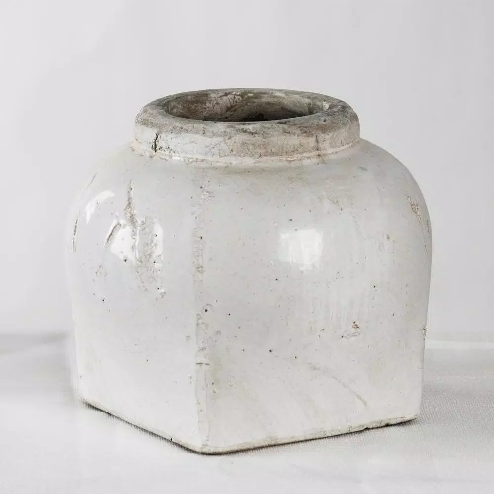 This ceramic jar 13.5 in. x 12 in. x 13.5 in. is the definition of simple yet striking. Handcrafted with a distressed glaze, this off-white jar is sure to accommodate your design needs. Arrange this as a pair, or along a cluster of the same vase in a small or medium.