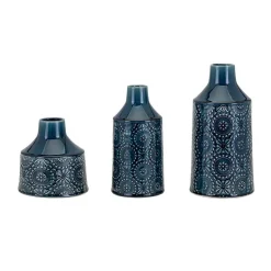 Benjara Glazed Blue Ceramic Floral Vases (Set Of 3)