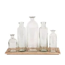 3R Studios Glass Bottle Vases With Tray (Set Of 5)