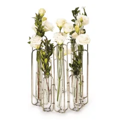 Two’s Company 28 In. Wide Lavoisier Gold Stainless Steel/Glass Hinged Flower Vases (Set Of 10)