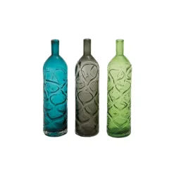 LITTON LANE 16 In. Polished Assorted Colors And Geometric Embossed Embellishments Glass Decorative Vases (Set Of 3)