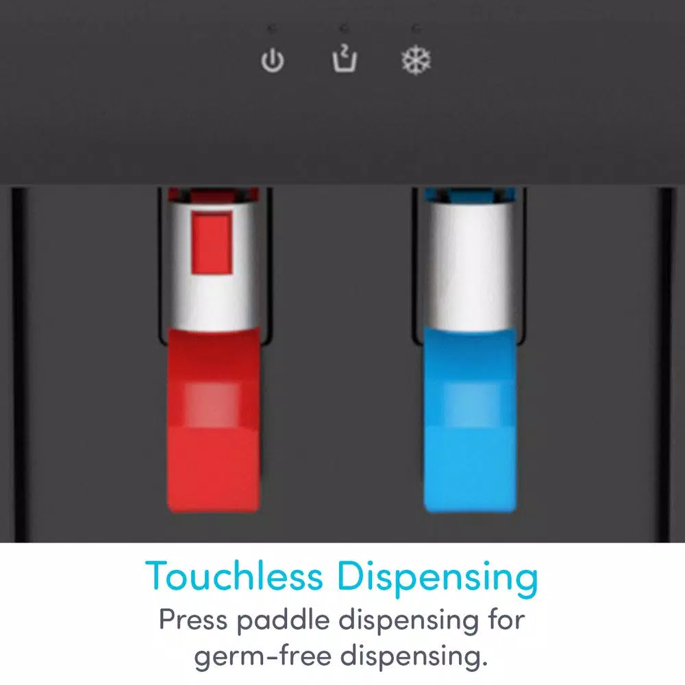 - TOP LOADING DISPENSER: This water cooler dispenser loads from the top & allows you to spot if the dispenser is running out of water, which is a great feature for office settings.