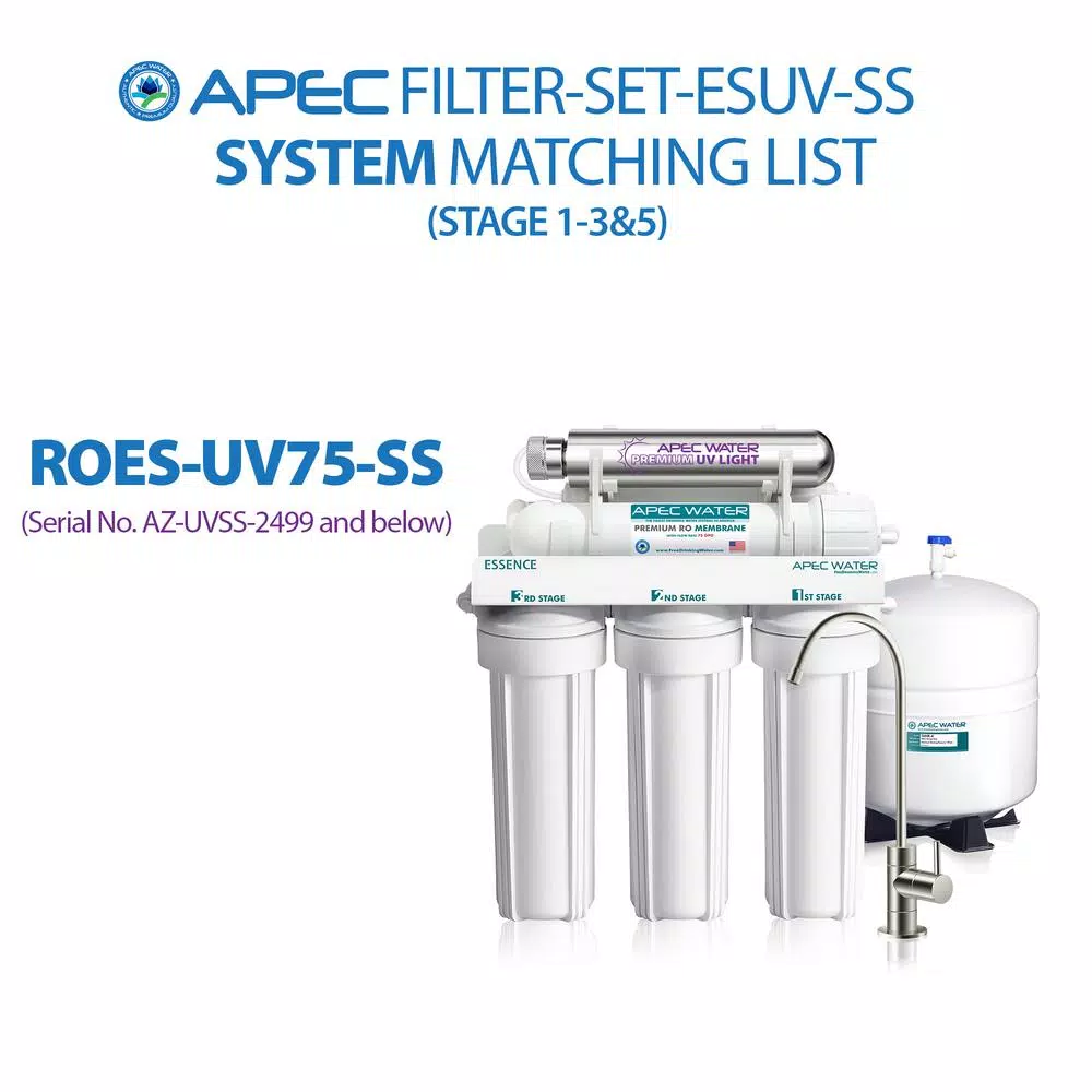 - Replacement filter set ONLY for APEC ROES-UV75-SS with serial number AZ-UVSS-2499 and below