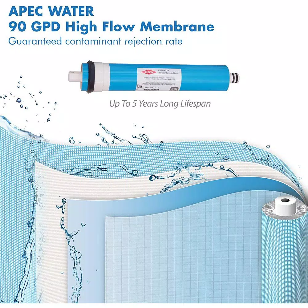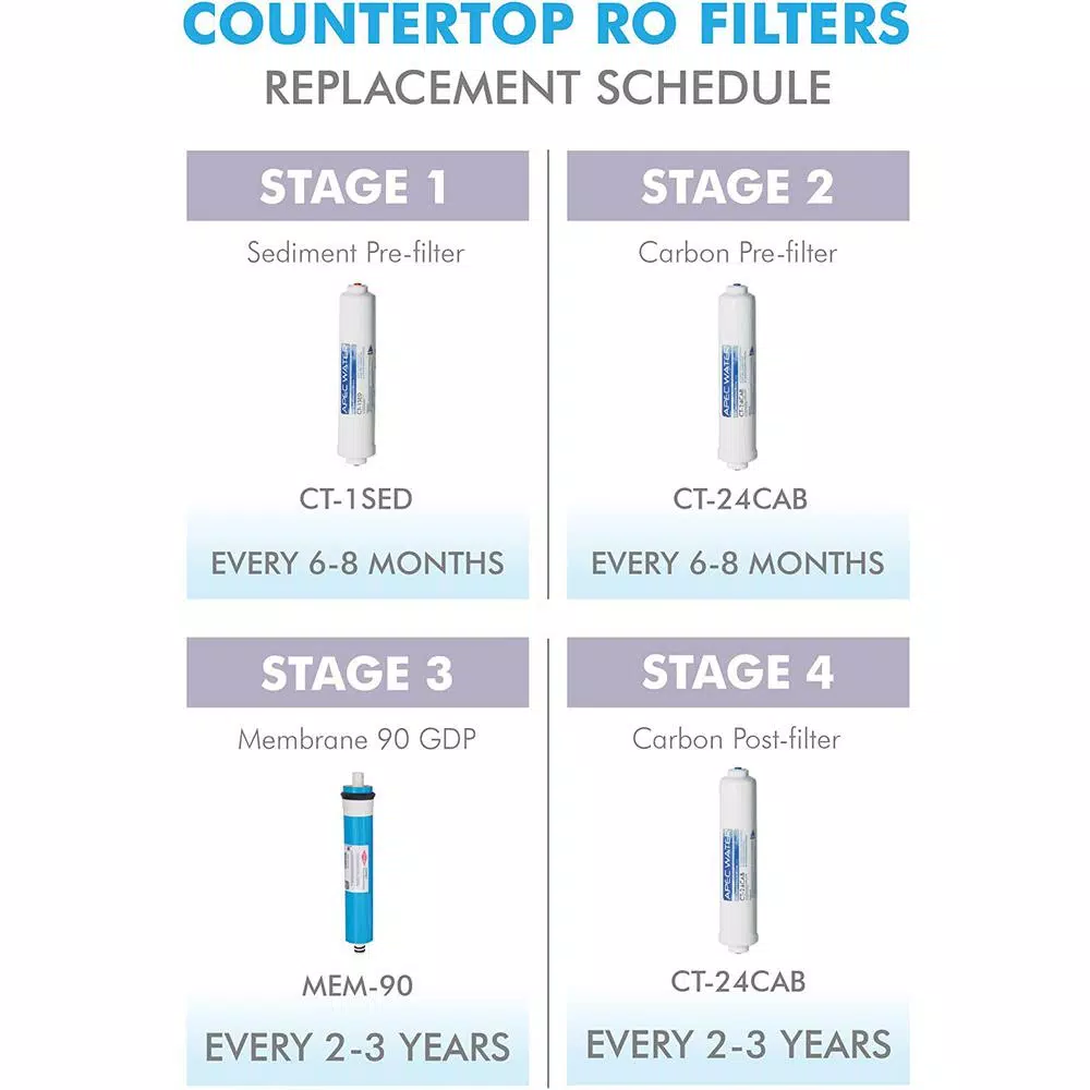 APEC Water Systems high capacity filter set is made with high quality filtration components to provide a longer lasting filter set to protect and prolong the lifespan of your reverse osmosis system. Premium quality pre-filters and 4th stage filter lasts 6 to 12 months for high performance contaminant removal. These standard size in-line filters are 10 in. and feature 1/4 in. quick-connect fittings for durable and easy filter change-outs. These filters are compatible with APEC Water Systems Countertop reverse osmosis drinking water system (RO-CTOP).