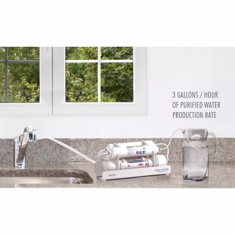 This light and compact RO-CTOP system was specifically engineered to offer exceptional portability, convenience and ease of use. It hooks up to most existing standard faucet in seconds – no installation required. If you want an unlimited amount of bottled-water-quality water that you can take with you anywhere, this is your dream system. Perfect for apartments, condominiums, motor homes, retirement homes and students. Provides safe drinking water with capacity up to 90 Gal. per day (at 60 psi water pressure) to fill any water storage container you provide. Enjoy unlimited ultra-fresh, clean, great tasting water right at home for the best quality water for cooking and making delicious coffee, tea and ice. Save money, time, and hassle of buying costly, heavy bottled water and live healthier with ultra-safe water that is 99% contaminant free. System is designed to remove contaminants such as chlorine, taste, odor, toxic fluoride, arsenic, lead, and chromium.