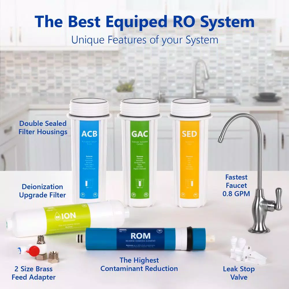 - Leak Detection: Each under sink water filter includes an emergency leak stop detector that shuts off water flow when it detects unwelcomed moisture