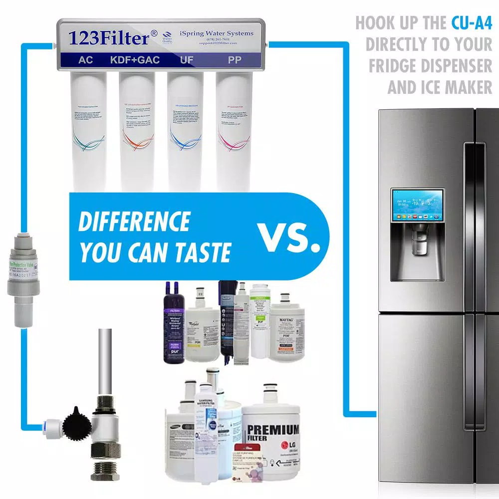 5-filter pack for ISPRING 3-Stage Ultra-Filtration System CU-A3, Compare to Watts 531130 2 of First Stage 5 Micron Inline Sediment filter, Tested by independent third-party to meet NSF/ANSI Standard. It can effectively remove rust, and, other larger particles and solid Impurities in water.1 of Second Stage UF Hollow Fiber Technology membrane. Hollow Fiber Technology uses Standard home water pressure to push water through a semi-permeable membrane. Suspended particles and materials of high molecular weight are unable to pass through the 0.1 micron UF membrane, leaving you with only fresh clean water and dissolved minerals. 2 of Third Stage Post Activated Carbon Filter Adopting non-renewable coconut shell activated carbon with ultra-micron aperture, this carbon filter absorbs any residual chlorine, organics, humus, and odor.